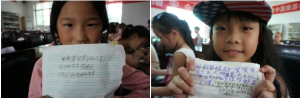 就在上课的时候,我突然听到我们明天上午的课取消不上,今天下午的就要告别这些小朋友的时候,心里咯噔一下,原来真正到了这种分别的时候,心里真的还是有很多不舍得。下午上课之前,一位小男生拿着一支冰糕,问我吃不吃,我笑了笑,摸着他的头让他自己吃,这几天的时间,我想我和他们一部分人都成为了很好的朋友了吧最后一节课是班会课,主题是展望未来,我们让孩子们写下或者画下他们未来的理想。
