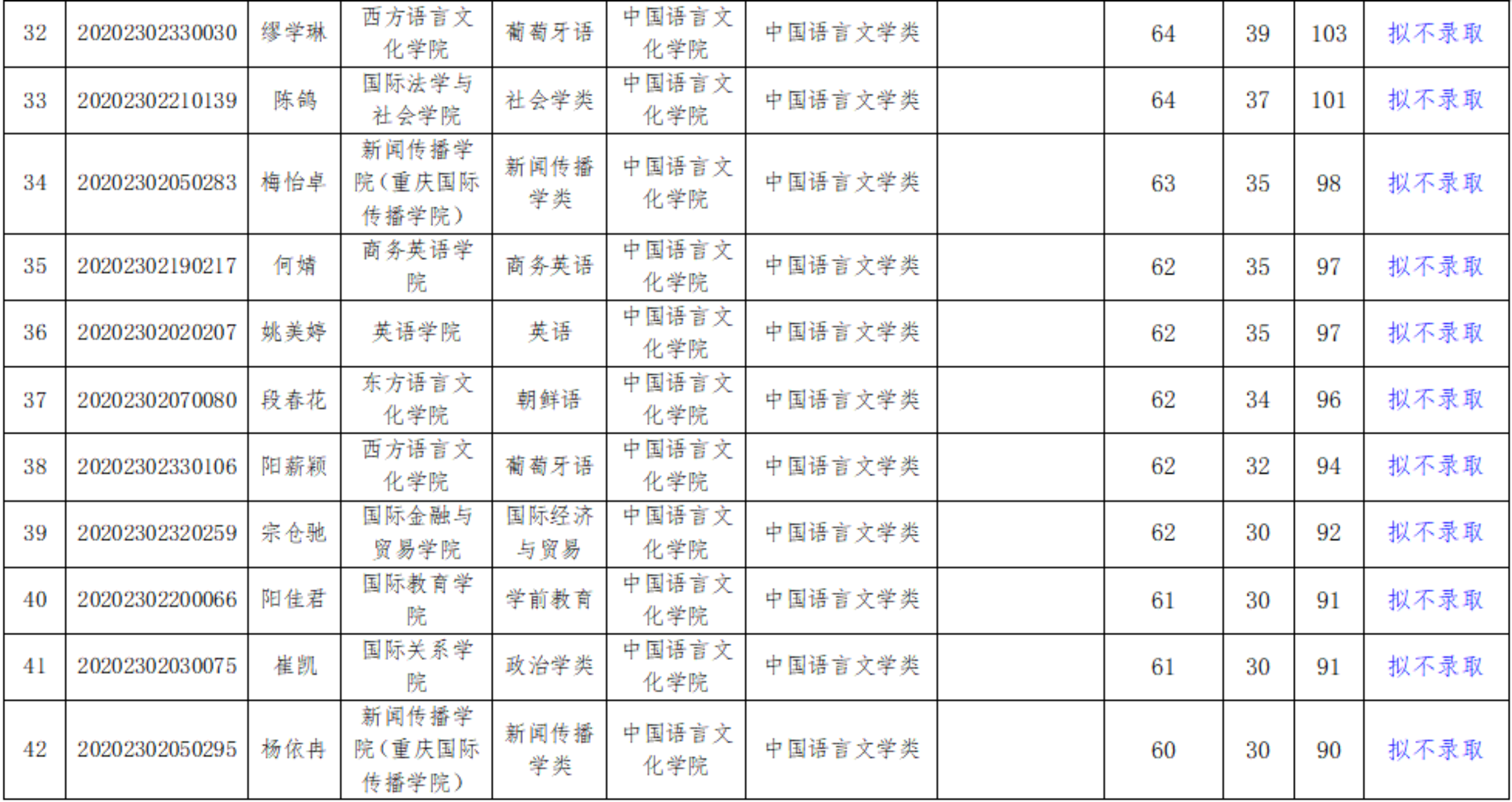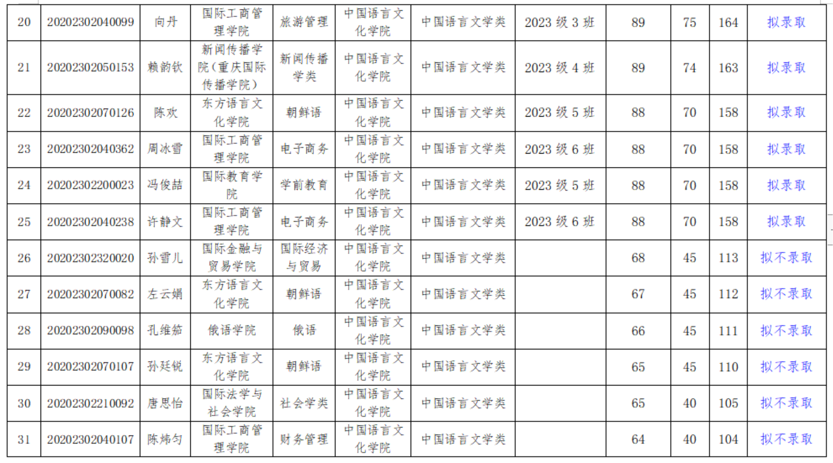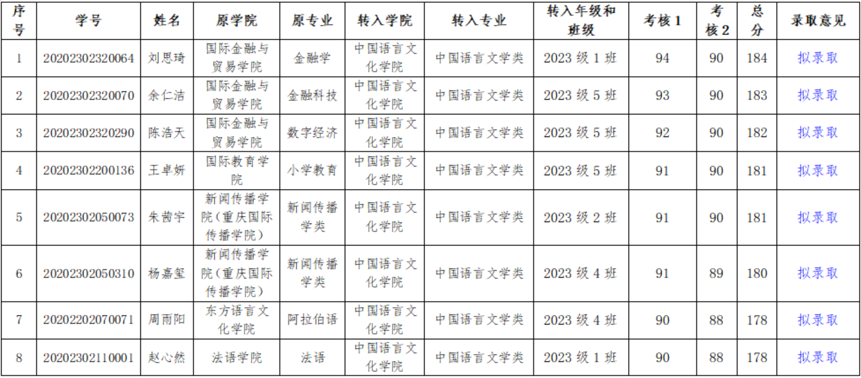 tyc5997太阳集团2023级本科生转专业考核结果和拟录取名单