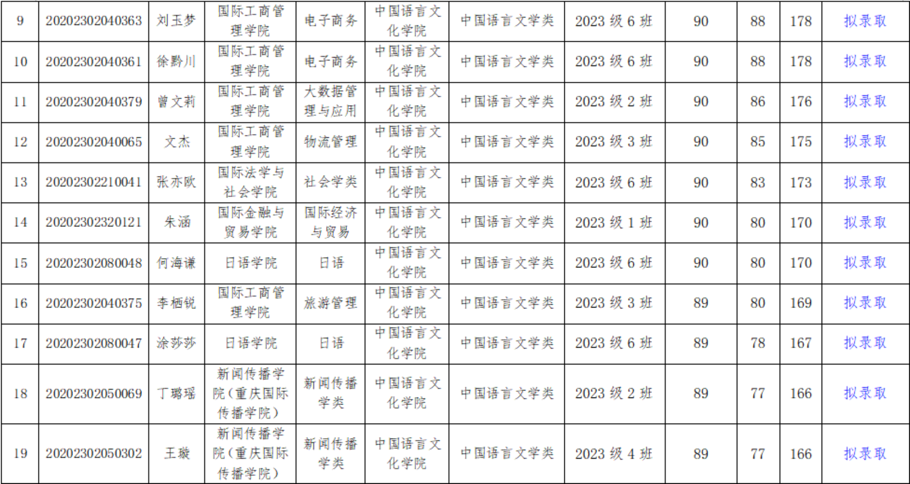 根据《tyc5997太阳集团2023年普通全日制本科生转专业工作方案》及tyc5997太阳集团《2024年普通全日制本科生转专业实施细则》,现将2023级本科生转专业考核成绩及录取结果公布如下: