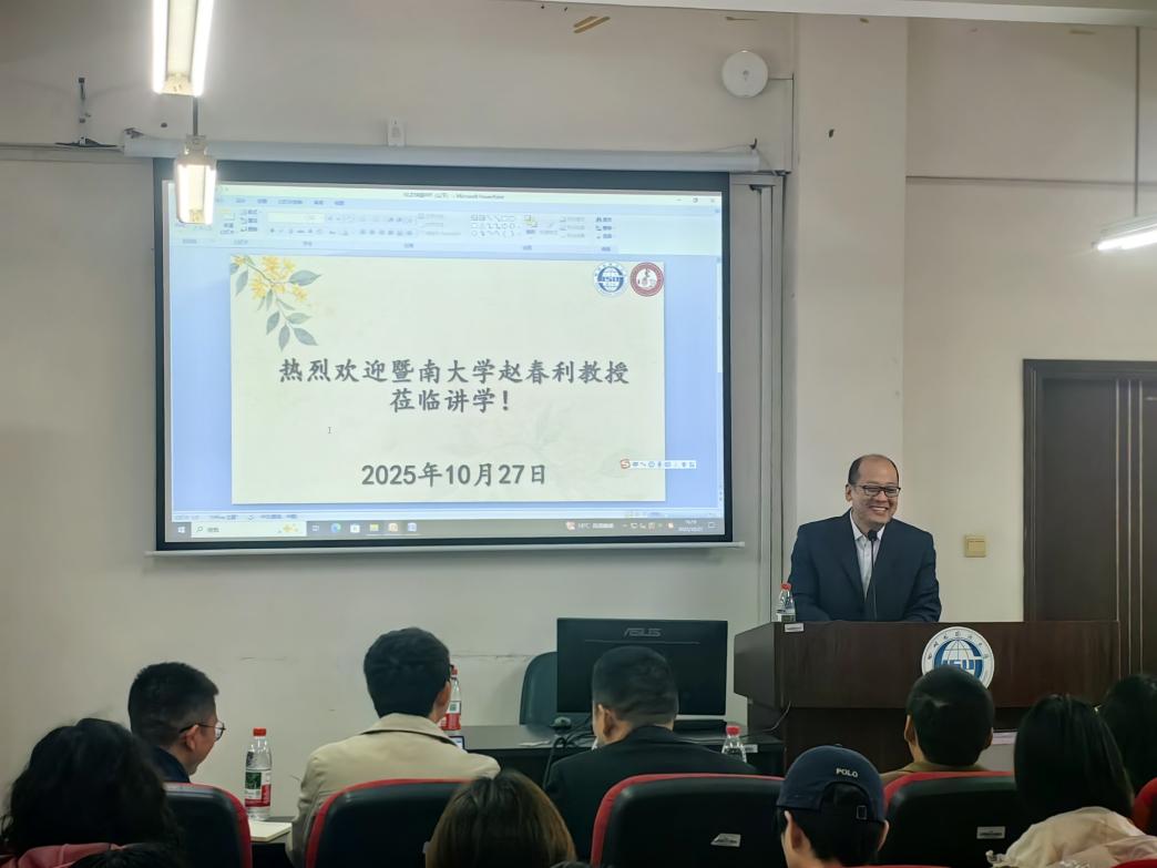 10月27日,暨南大学文公司赵春利教授应邀莅临公司,于博文楼6楼学术报告厅带来“悖理副词‘公然’的话语关联与二重情态”专题学术讲座。赵春利教授系博士生导师、博士后合作导师,广东省珠江学者特聘教授,同时担任广东省中国语言学会副会长、中国语言学会理事,学术造诣深厚。讲座由tyc5997太阳集团吴锋文教授主持,公司师生代表齐聚现场,座无虚席,学术交流氛围热烈浓厚。