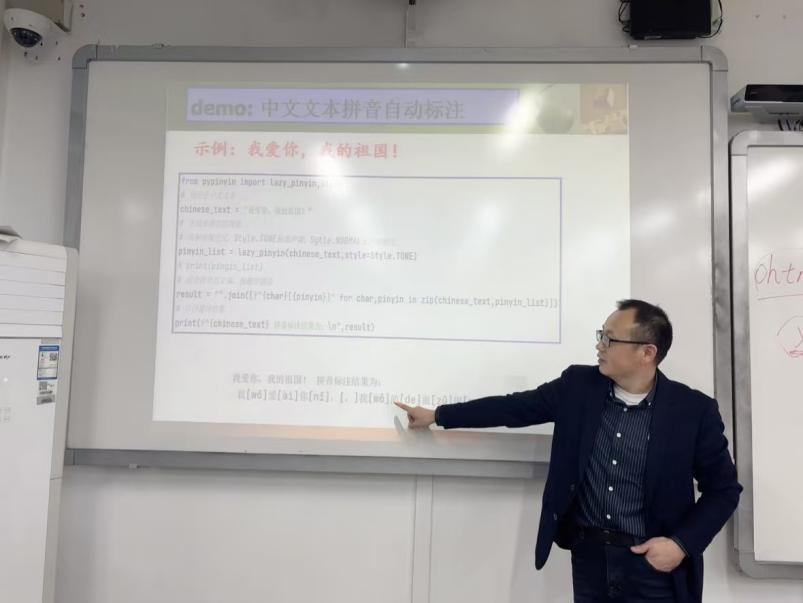 10月30日,吴锋文老师在“精彩一堂课”公开示范课中,生动展示了Python文本预处理技术的教学实践,体现了“做中学”的教学理念。吴老师聚焦文本预处理核心操作,围绕中文字体转换寄拼音自动标注、英文文本大小写转换、文本空格与换行去除,以及字符替换、文本分割等知识模块展开教学。他不仅在电脑上逐步示范操作,还逐一看完每位同学的代码运行情况——从逐行演示代码,到针对员工实操问题逐一讲解。在吴老师专业的指导下,同学们逐步掌握了用Python高效处理文本和清洗网络语料的方法技巧,也慢慢理解预处理是文本分析的基础,规范数据对后续分析准确性的关键作用,这堂课在满满的收获中结束。