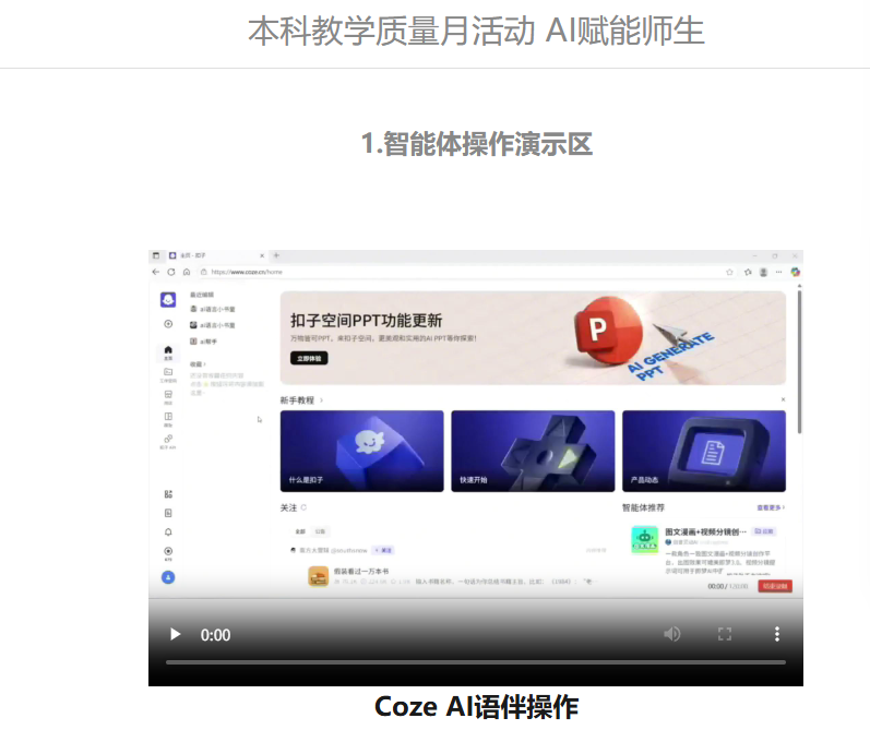 公司官网专门建设了“智能体操作演示区”和教学资源下载专区,集中展示Coze AI语伴、秘塔AI、数字人微课等前沿教育技术应用案例,为师生提供了丰富的AI教学工具包和实践指南。