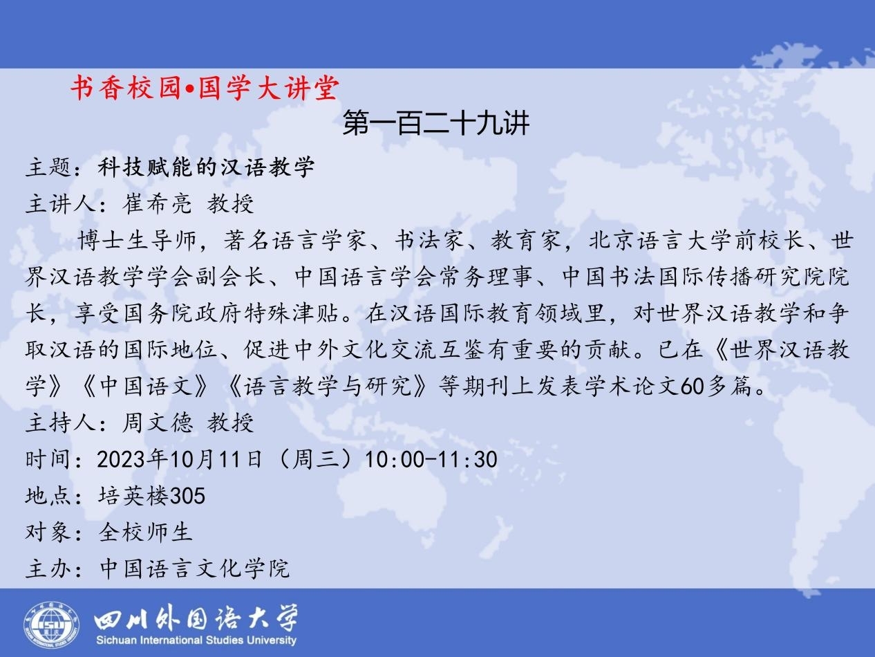 书香校园•国学大讲堂 第一百二十九讲:科技赋能的汉语教学