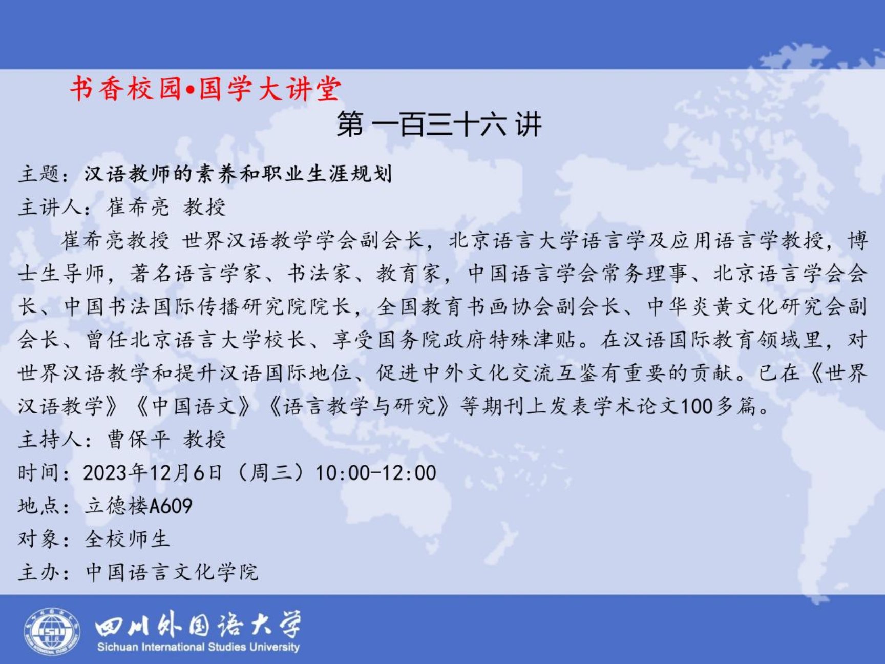 书香校园·国学大讲堂·第一百三十六讲:汉语教师的素养和职业生涯规划