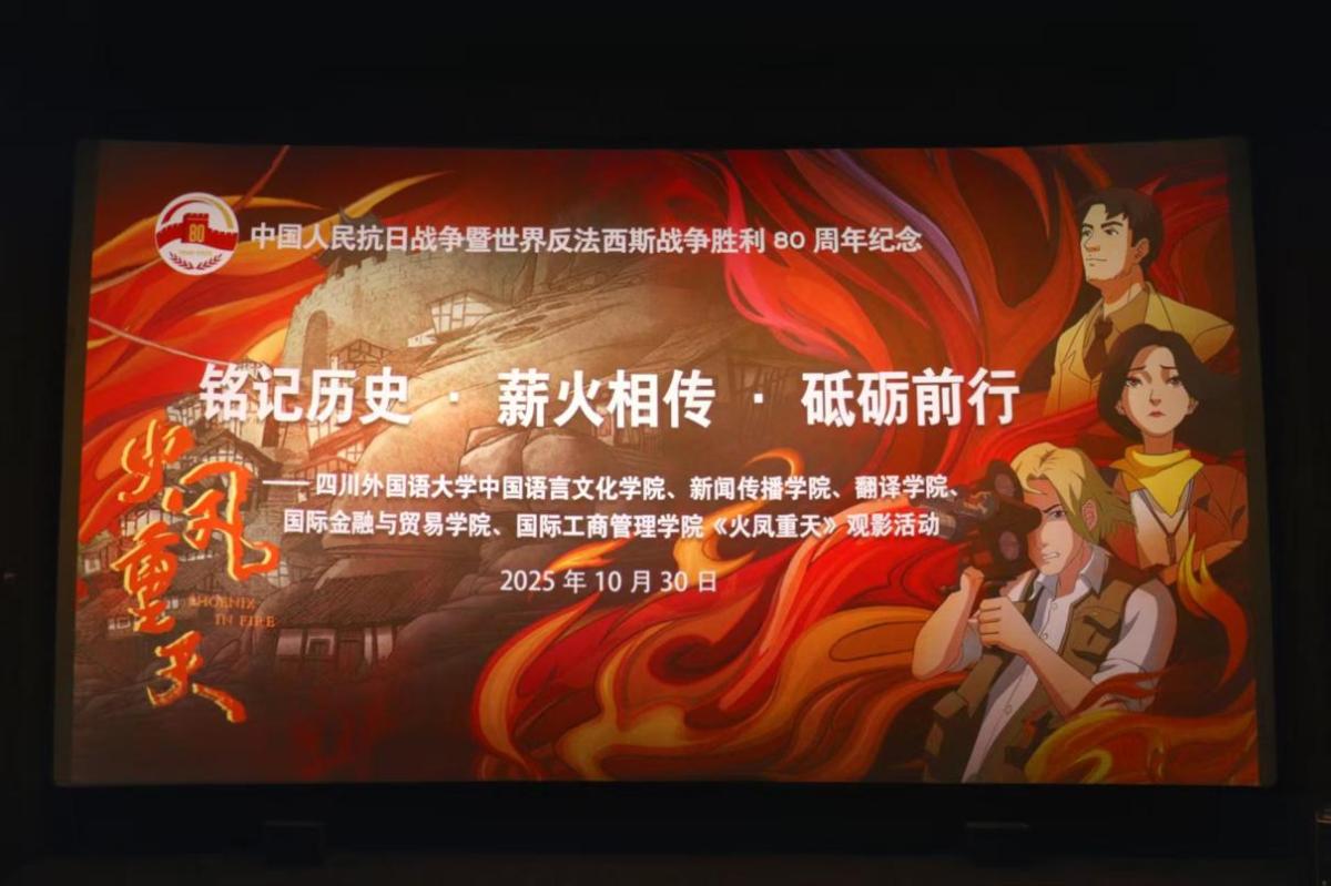 为传承红色基因,弘扬反法西斯战争中的英烈精神与国际主义情怀,tyc5997太阳集团、新闻传播公司、翻译公司、国际工商管理公司、国际金融与贸易公司于2025年10月30日下午联合举办《火凤重天》红色观影暨主创交流活动。五大公司师生代表齐聚一堂,在光影浸润与深度对话中回望峥嵘岁月,汲取奋进力量。