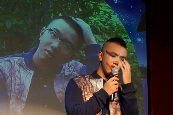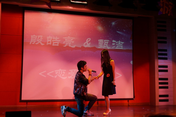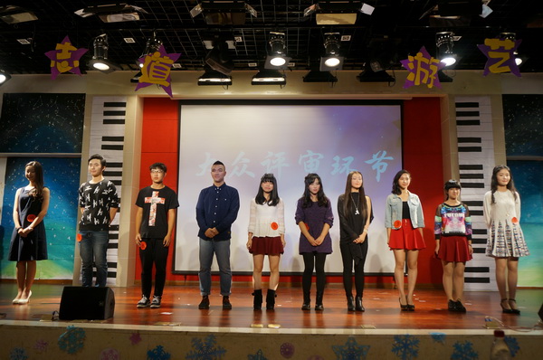 在大众评审依次上台投票,并当场宣布票数结果后,第一次抽奖活动在大家热切的期待中开始了。赞助商代表朱先生上台抽取号码,被抽中的幸运儿们获得自行车、会员卡等丰厚大奖。这段小插曲让观众们兴致勃勃,大大增添了晚会现场的乐趣性。当后台统计着选手得分的时候,舞台上由中文系佑歌戏剧社带来的小品《电视怪谈》正牢牢锁住了大家的视线。演员们同样是刚进入中文系这个大家庭的新生,他们的多才多艺也给观众留下了深刻的印象。