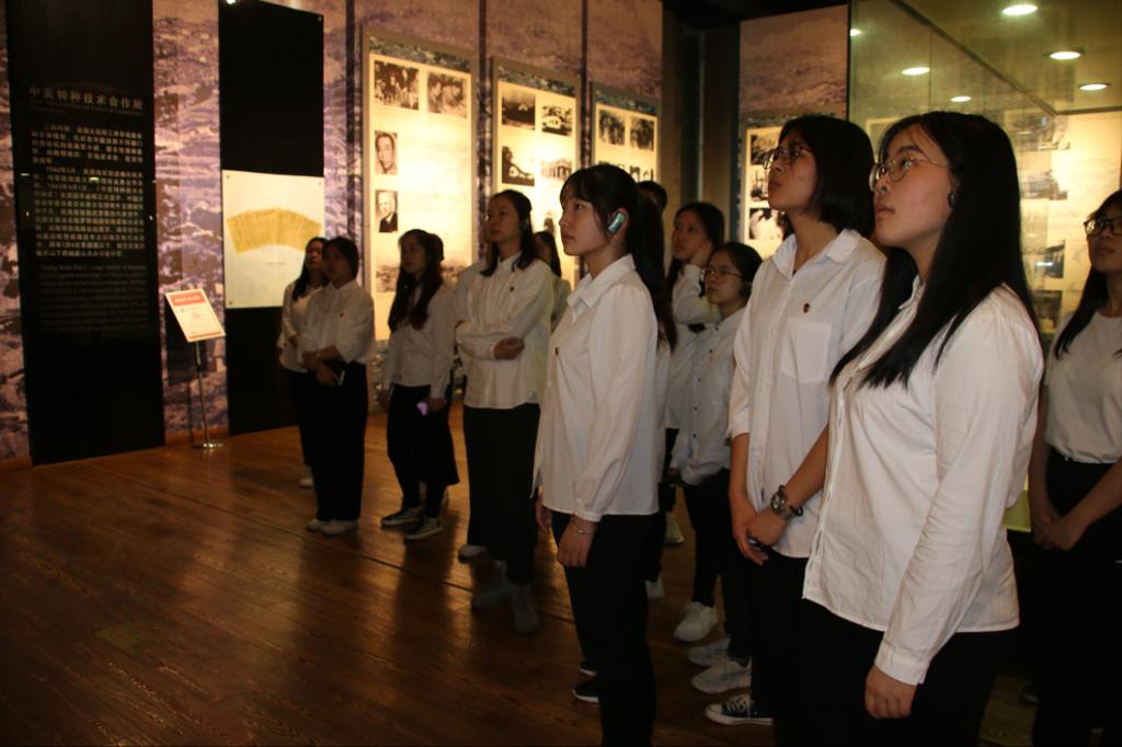 活动的第一个部分是参观陈列馆。跟随讲解员的步伐,同学们参观了各个展厅,了解革命年代的革命烈士的事迹,体悟风雨飘摇的年代先辈们坚定的革命信念。这些红岩革命烈士牺牲的年龄集中在30岁左右,他们在正值壮年时献身于国家的革命事业,用生命换回了现在的幸福生活,展厅里陈列的不仅仅是简简单单的几封书信、几幅画像,更是历史的见证,时代精神的传承,是当代青年要铭记于心的革命情怀。