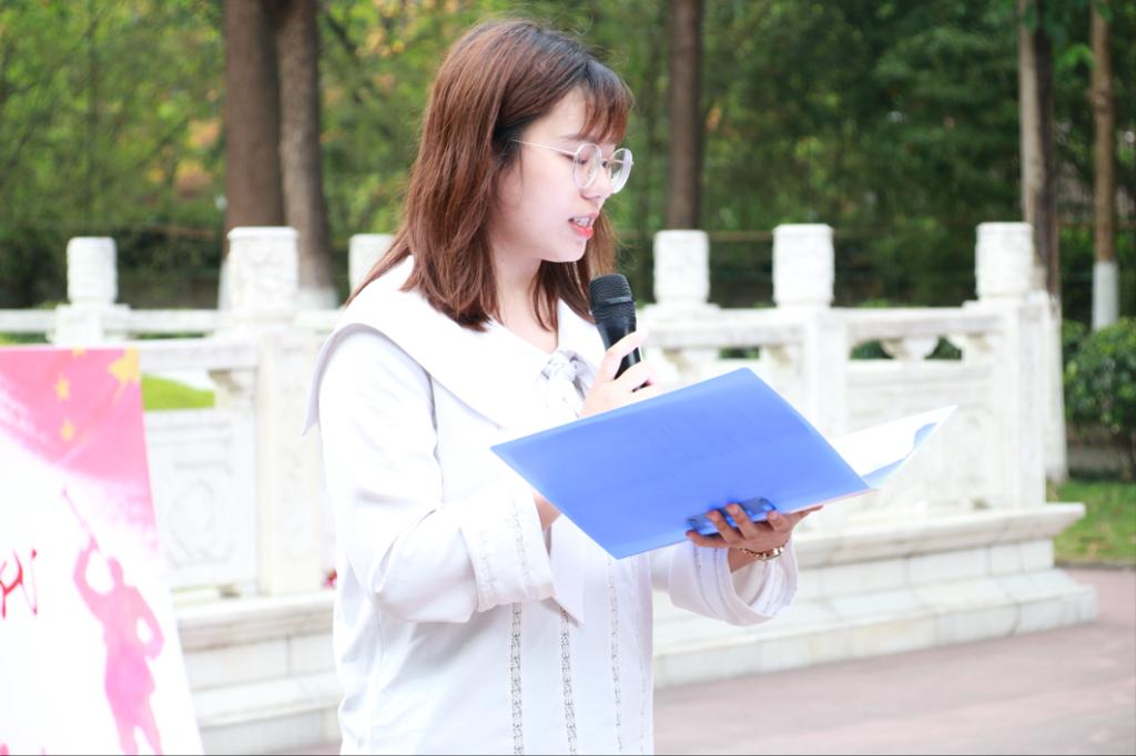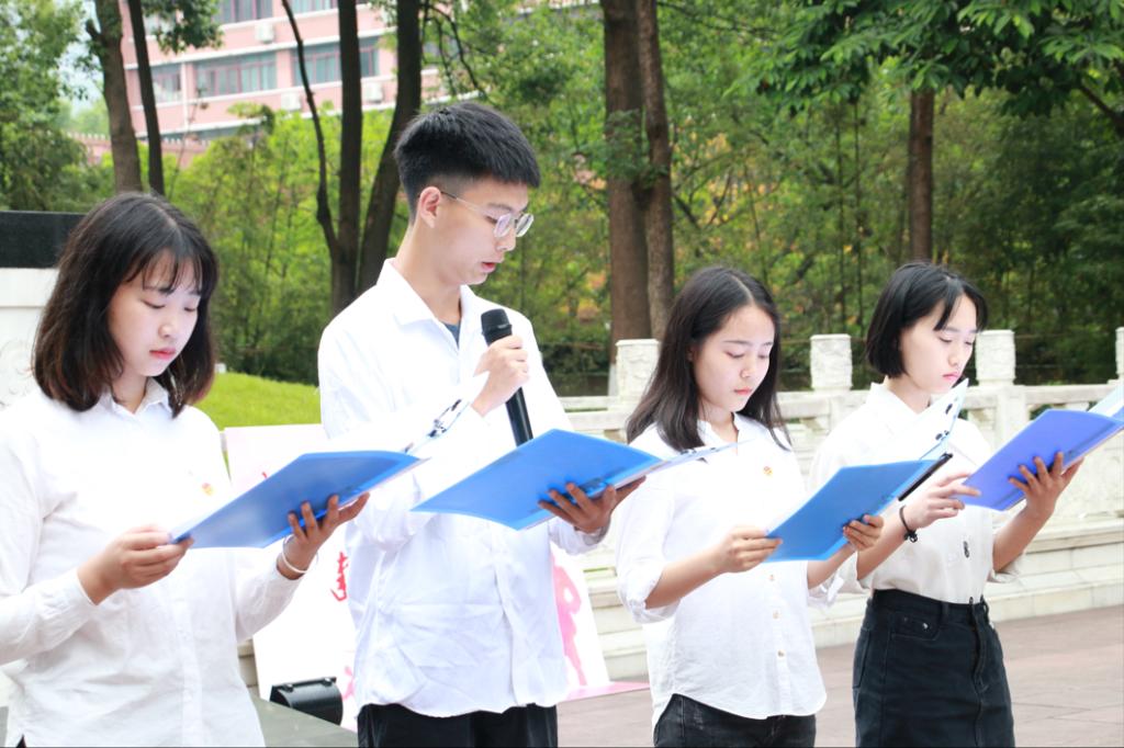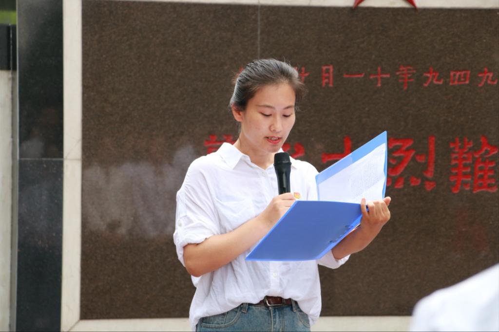 参观完陈列馆后,同学们步行来到烈士陵园前集合,进行活动的第二个部分。此部分共七个议程,分别为齐唱国歌、微型团课讲授、员工代表演讲、全员宣誓、新团员授徽、团总支副书记提出寄语和希望、以及齐唱团歌并写下感悟。