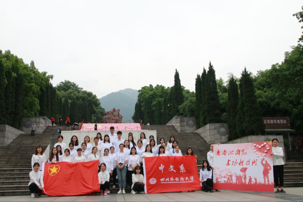2019年5月5日13:00,由中文系团总支员工会组织部主办的“青春心向党•建功新时代”特别主题团日活动在红岩魂广场成功举办。参与此次活动的人员有:中文系团总支书记,2018级辅导员秦丽老师、中文系团总支副书记勾温欣、中文系团总支员工会各部门部长、中文系2018级新团员、入团积极分子、入党积极分子。