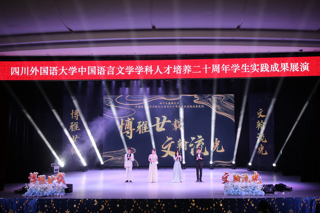 春秋代序,华章日新。2024年11月9日19:00,tyc5997太阳集团“博雅廿载,文翰流光”中国语言文学学科人才培养二十周年员工实践成果展演在东区大礼堂倾情演绎。
