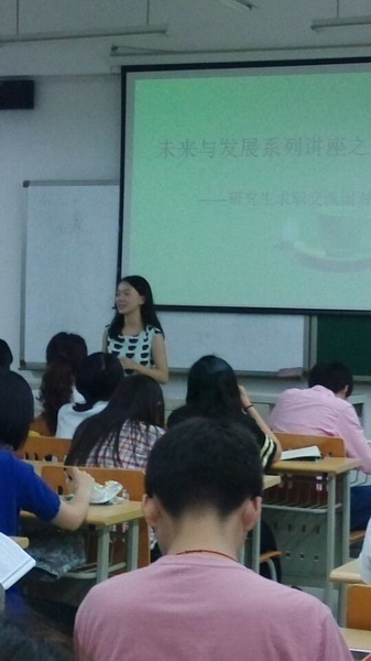 2015年6月3日晚上7:00——9:00,国际汉语教育协会在西区教学楼B栋403成功举办了“未来与发展系列讲座之八——研究生求职交流面对面”经验交流会。会长朱莉莉和各部门部长出席了本次会议。交流会期间气氛很活跃,大家都很认真听取各位学姐、学长的意见和建议。同学们在本次会议中也受益匪浅。