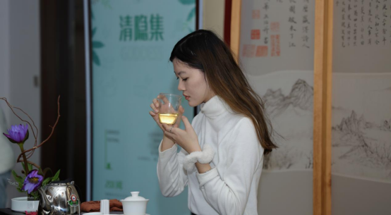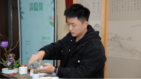通过茶艺师讲解和视频观看,大家主要从茶的起源、发展、分类,重庆茶文化、茶礼等方面掌握了基础知识,大家还学习到了传统经典泡茶方式——点茶。作为宋朝时期的一种煮茶方法,通过用沸水冲点茶粉,并搅拌形成泡沫的成茶过程。点茶不仅是宋人的饮茶方式,更是宋人的生活美学的表现形式。在现场体验环节,茶艺师娴熟优美的泡茶动作和精湛的泡茶技术深深吸引着大家,当大家亲自完成烫杯、拨茶、高冲、盖沫、奉茶等一系列动作时,体会到的不仅仅是动作要领,还有茶艺所带来的清醇、幽雅以及朴质的气质。