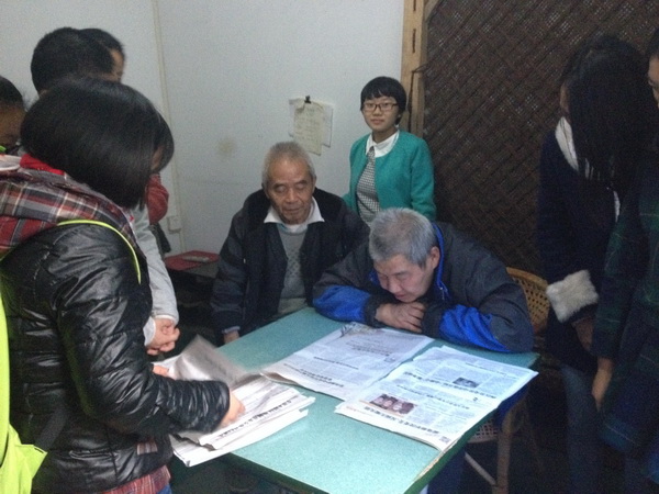 首先是江爷爷家,江爷爷对于小伙伴们的到来表示了非常热烈的欢迎,才踏进屋内,就非常热心的给没做到沙发的小伙伴找来了凳子,和小伙伴们开始拉家常。江爷爷身体健康、衣食无忧,但内心的孤寂与苦闷需要与人诉说,也许他需要的只是一位倾听者而已吧!所以才会对我们的到来那么高兴。