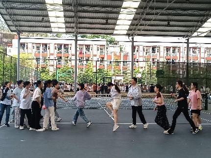 接着便是集体项目的比赛。篮球投篮、集体跳绳、足球颠球、排球垫球等等一系列活动有序举行。哨声响起,每位队员争分夺秒为自己的队伍赢得荣誉。竞技比赛场地,参赛队员们团结拼搏,力争上游,场面紧张有序,妙趣横生。纵使有失败,大家也丝毫没有气馁或埋怨,更多的是加油打气,呐喊助威,团队精神在比赛中体现得淋漓尽致。无论输赢,他们以勇敢为名,向各比赛项目的名次发起冲击,用汗水、拼搏、团结、友爱书写最闪亮的身姿。