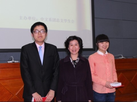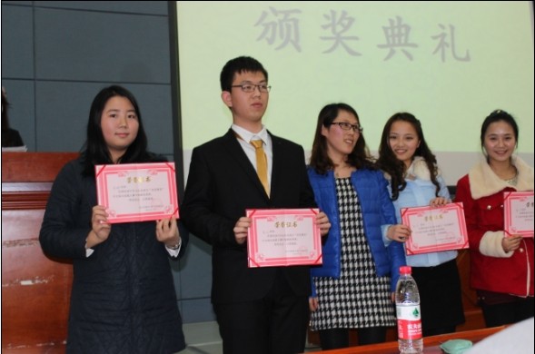激烈的朗诵角逐过后,又进行了充满趣味的“头脑风暴”和“识文断字”环节。接着是“即兴演讲”,选手根据所给题目进行即兴演讲,并由评委老师给出点评。该环节结束后经过紧张的统计计分,最终评出一等奖一名,二等奖一名,三等奖一名,优秀奖两名。第九组同学以103.7分的优异成绩荣获一等奖,由卢书记颁发奖状和礼品;第三组和第一组同学分别获得二、三等奖,由胡主任和评委张老师颁奖;第二组和第十组同学获得优秀奖,由评委屈老师颁奖。随后获奖人员和颁奖嘉宾合影,大赛完美落下帷幕。