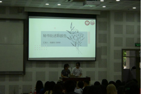 紧接着,各个部门的负责人按序上台进行述职报告。各部门都以各自的角度,结合过去一年的活动经历,对本部门2022至2023年学年的工作情况进行了概述。负责人们总结工作的成果与不足,同时,面对陈茁老师与主席团成员的问题,也对答如流,展示了tyc5997太阳集团员工会的出色工作能力。