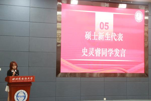 新老员工代表相继分享感悟与期待。2023级在校生代表孙煜雯将老员工活比作“终点未知的越野赛”,鼓励学弟学妹们摒弃焦虑与徘徊,主动走出舒适圈,去接触、探索并深耕自己热爱的领域;硕士新生代表史灵睿则聚焦“自我认知”,建议同学们通过实践经历与挑战发掘个人特长与兴趣,同时呼吁大家拓宽视野、关注时代发展,积极参与社会实践,为国家国际传播事业贡献青春力量。本科新生代表李美美分享了初入大学的兴奋与对未来的憧憬,她将与同学们共勉,保持好奇心、培养独立思考能力,以沉静之心避免浮躁盲从,以勇敢之心在更大舞台上展现中文人的风采。