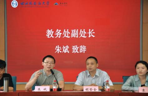 紧接着,教务处副处长朱斌致辞。他强调书院班的创立开班是对人文精神与技术发展双元共向的时代背景的积极回应。他希望书院班学员们在智能写作过程中要做智能技术的掌控者而非受控者,指出要以创新的思维,重构写作范式,通过AI赋能写作学习,打破传统写作的边界,构建更丰富的人类想象力。