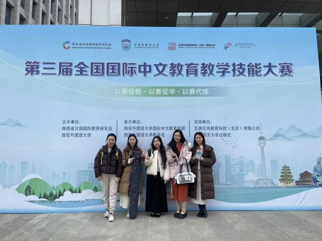 在公司领导的高度重视与大力支持下,公司首次组织员工参加此项全国性赛事。李函柯老师、段文华老师、张洪健老师担任指导老师,国际中文教育专业中国员工刘思瑶、胡嘉琪、刘慧以及越南职工陈氏垂簪组成代表队,由李函柯老师带队,赴西安参加复赛与决赛。