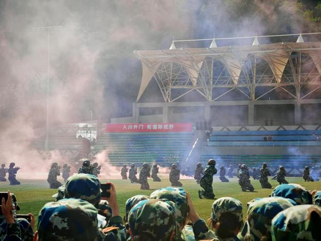 本次军训内容兼具强度与深度,队列训练打磨严谨姿态,擒敌拳与匕首操锤炼阳刚之气,战术演练模拟实战场景。无论烈日炙烤皮肤,还是细雨打湿衣衫,中文学子始终士气如虹,从未动摇参训信念。从列队时分毫不差的间距,到战术演练中铿锵有力的动作,每一处细节都凝聚着专注与汗水,生动诠释了中文学子不畏艰难、敢打敢拼的精神底色。