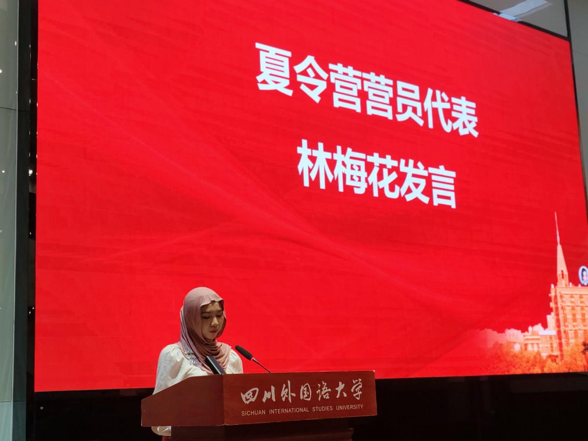 布拉维加亚大学员工林梅花代表所有学员向中国政府提供的宝贵奖学金机会、川外的精心安排以及中文公司老师们的辛勤付出表示衷心感谢。她表示,夏令营不仅全面提升了同学们的商务中文应用能力,还让大家深入学习了中国成熟的直播模式、供应链等管理经验,更让大家掌握了平台运营、数字营销、直播带货等跨境电子商务技能。林梅花承诺一定不会辜负领导和老师们的期望,努力成为“数字丝路”的民间使者,用青年人的创新实践,推动印尼和中国经贸合作和友好往来。