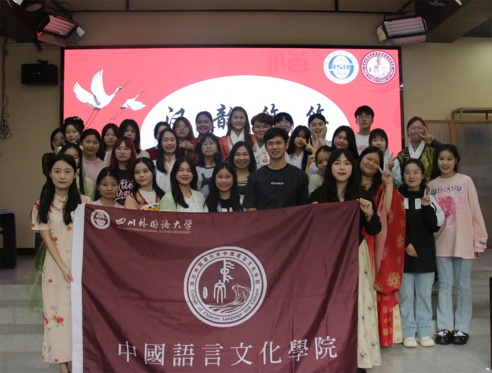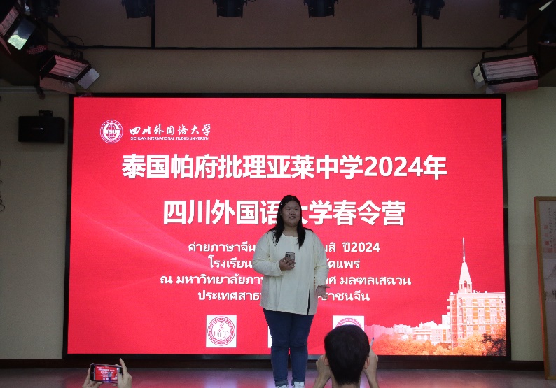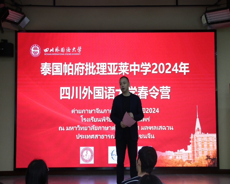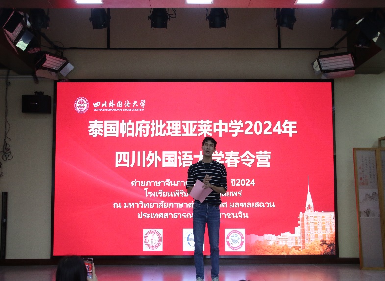 泰国帕府批理亚莱中学领队楚伟亮上台发言。他对此次川外主办的春令营活动以及各位老师和工作人员的精心准备表示了感谢,并期待后续更多交流合作。