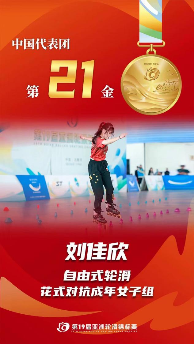 喜讯!公司刘佳欣同学在第19届亚洲轮滑锦标赛斩获金牌