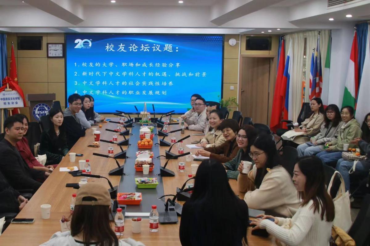 座谈会上,薛红书记作了简要致辞,并向与会人员表示热烈欢迎与诚挚感谢。各位员工积极讨论,其中,2004级员工刘轩表达了对母校及老师的培育之恩,他谈到:“在坚守中文学科发展的基础上,我们可以积极探索与其他专业的联动,从探索更多元化的发展路径。” 2005级员工冉义则认为:“在外语院校学习中文,为我们提供了更多接触不同文化的机会,这有利于中文学习培养开放包容的思维方式。”他还强调,“当前,中文学习可以积极拥抱人工智能技术,实现传统与现代的融合。”2012级员工毛宏伟则着眼于写作教学,他建议:“在写作教学中,我们可以适当地引入实用性的内容,以增强员工的实践能力。”员工们的真知灼见为中文学科的建设与发展提供了宝贵的建议。