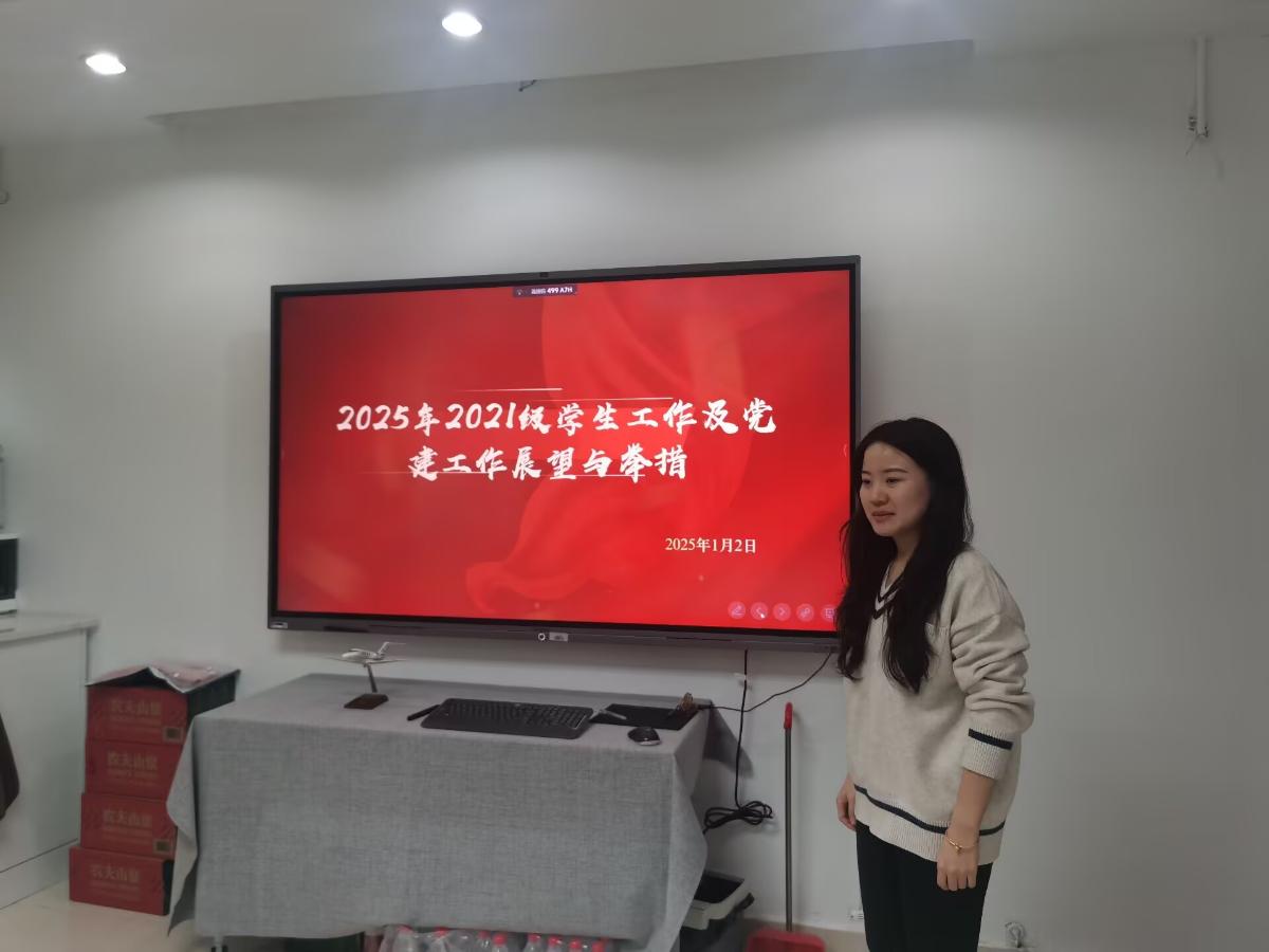 2025年1月2日,公司召开了员工工作总结大会,会议以“总结过去,展望未来,共绘立德树人新篇章”为主题,旨在全面回顾过往,前瞻布局,激发团队合力,深化员工工作内涵,推动育人事业迈向新阶段。本次会议由党总支书记薛红主持,党总支副书记邓琼、研究生辅导员邓慧琳及本科辅导员余露露、罗杰、陈茁、艾贇参加了此次会议。
