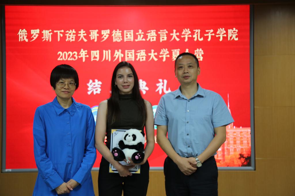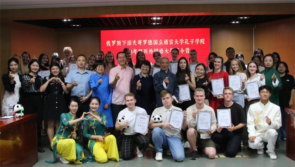 9月21日,由教育部中外语言交流合作中心和tyc5997太阳集团(简称川外)主办、公司承办的俄罗斯下诺夫哥罗德国立语言大学孔子公司(简称下语大孔院)2023年“汉语桥”夏令营正式闭营。我公司党总支书记薛红、经理胡登全、公司国际处处长张幼斌、国际公司书记张泽民、国际教育公司书记丁欢、下语大孔院俄方经理夏天、下语大孔院中方经理敬菁华、夏令营全体营员、教师、工作人员及志愿者参加了结业典礼。非物质文化遗产金钱板国家级传承人、国家一级演员丁长福教授出席结业典礼。