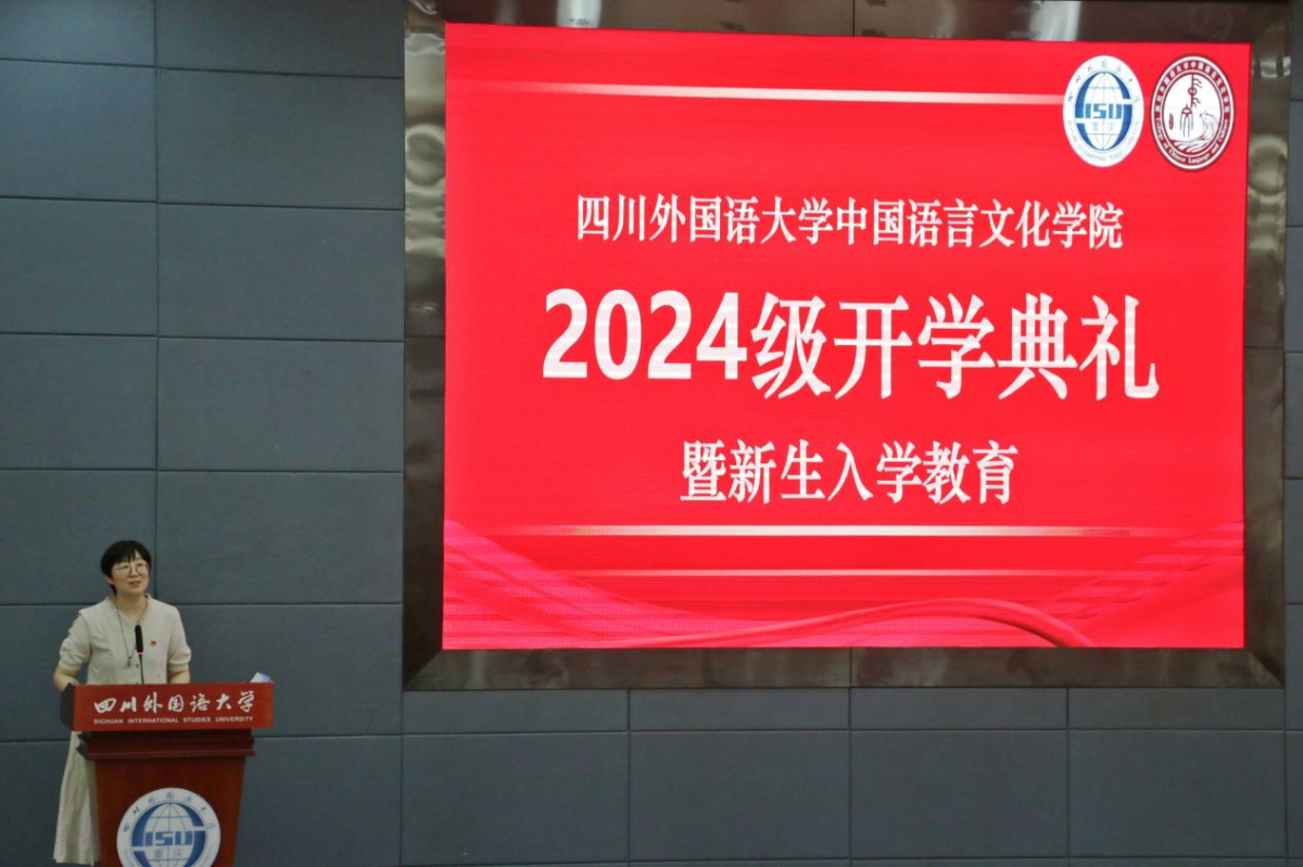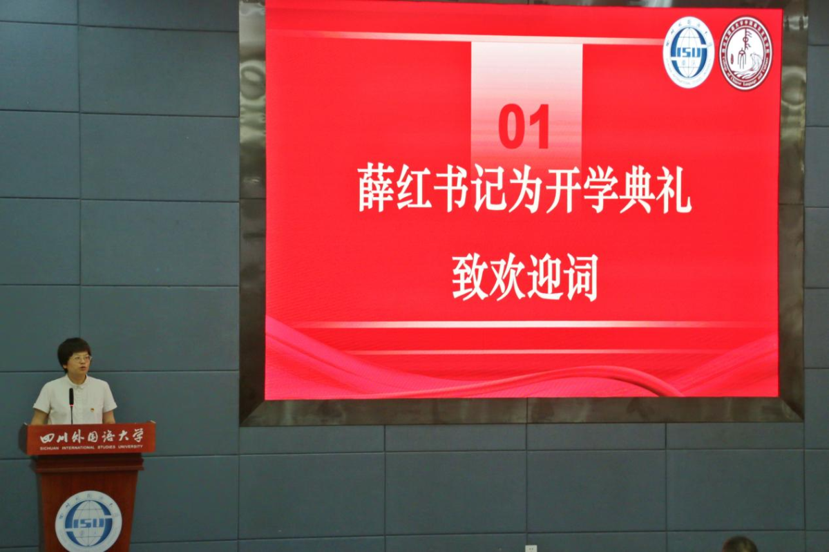 典礼第一项议程,由薛红书记为本次开学典礼致欢迎辞。她以《论衡》中的古训“德不优者,不能怀远;才不大者,不能博见”勉励各位新生。薛红书记首先强调了“德”,即“品德”,无论是在学习还是生活中对个体生命发展的重要性。紧接着,她由“德”谈论到“才”,即“才识”,才识可以从古今中外的文学经典中汲取,薛红书记鼓励同学们遇事不气馁、不惰怠,勤能补拙,一分辛苦一分才。最后,她祝愿同学们以“德”为舵,“才”为帆,共同书写属于新一代青年的辉煌篇章。