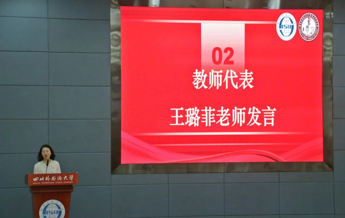 典礼第二项议程,教师代表王璐菲发言。王老师热烈祝贺了各位新同学的到来,并且结合人工智能迅猛发展的时代背景,和同学们共同探讨了在大学里可以培养出来的三个关键能力:一是“想象力”,二是“同理心”,三是“爱”。王老师深情动人的讲话,蕴含了对新生们在中文公司的、以及更远的未来的殷切祝福。