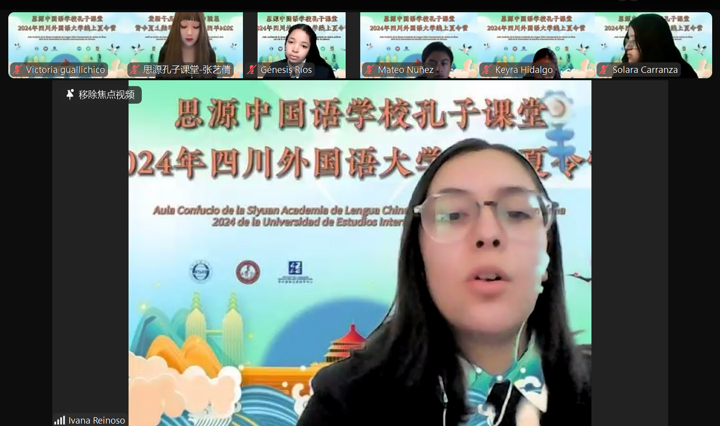 来自LICEO MATOVELLE公司的Ivana Reinoso代表夏令营全体学员感谢语合中心和中文公司所提供的感知中国、理解中国的宝贵机会。她介绍说,她的中文老师来自川外中文公司,受到老师的影响,她想去重庆吃火锅,想去成都看熊猫。Ivana Reinoso表示,参加夏令营的同学们跨越时差,相聚云端,共享成渝都市的文化魅力,在虚拟的空间中,大家一定会创造无数可能性,一定会获得一段奇妙而美好的记忆。