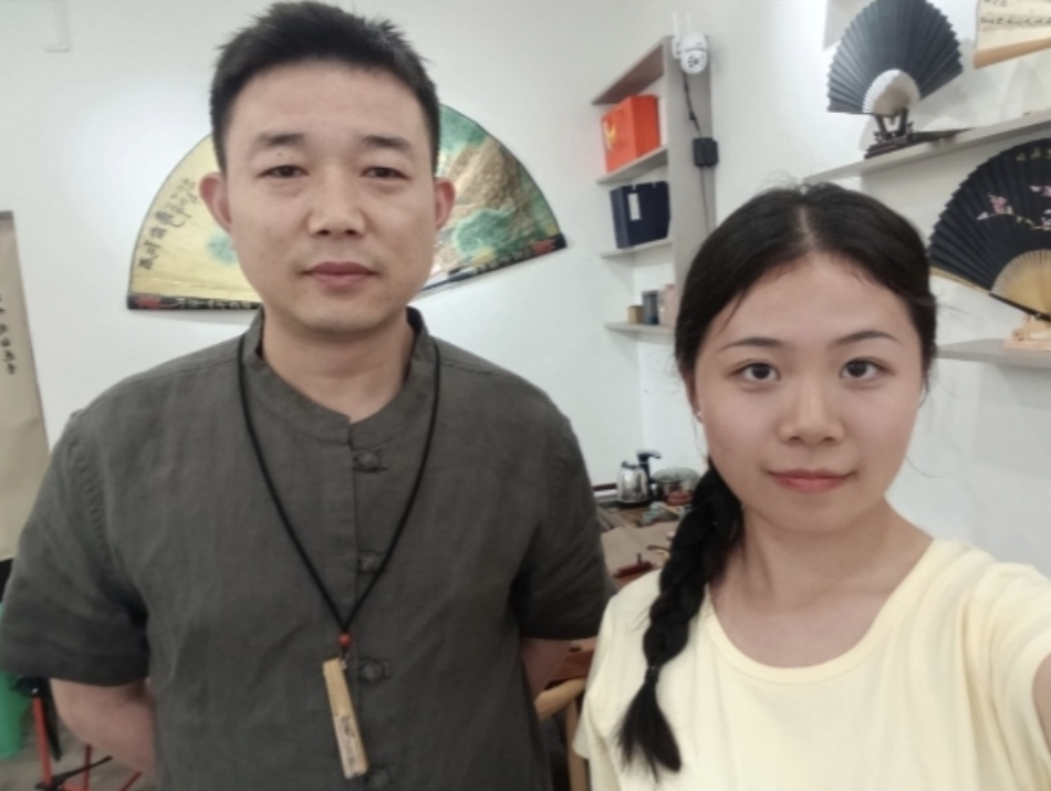 “我希望能够成为他们那样的人。”于珏琪在谈及丁长福老师与自己的师父时,眼里流露出的是无限的敬佩与仰慕。她的师父为爱情来到了荣昌,从师母家中习得折扇技艺,即便疫情期间生意惨淡、生活艰难,师父仍然坚守着,“他说当时他都想放弃了,但他也更不希望这个技艺消失,最终还是坚持了下来。”这种无私的品质深深影响着于珏琪,她跟着师父学技艺,学品德,“我很幸运能够做他的徒弟。”